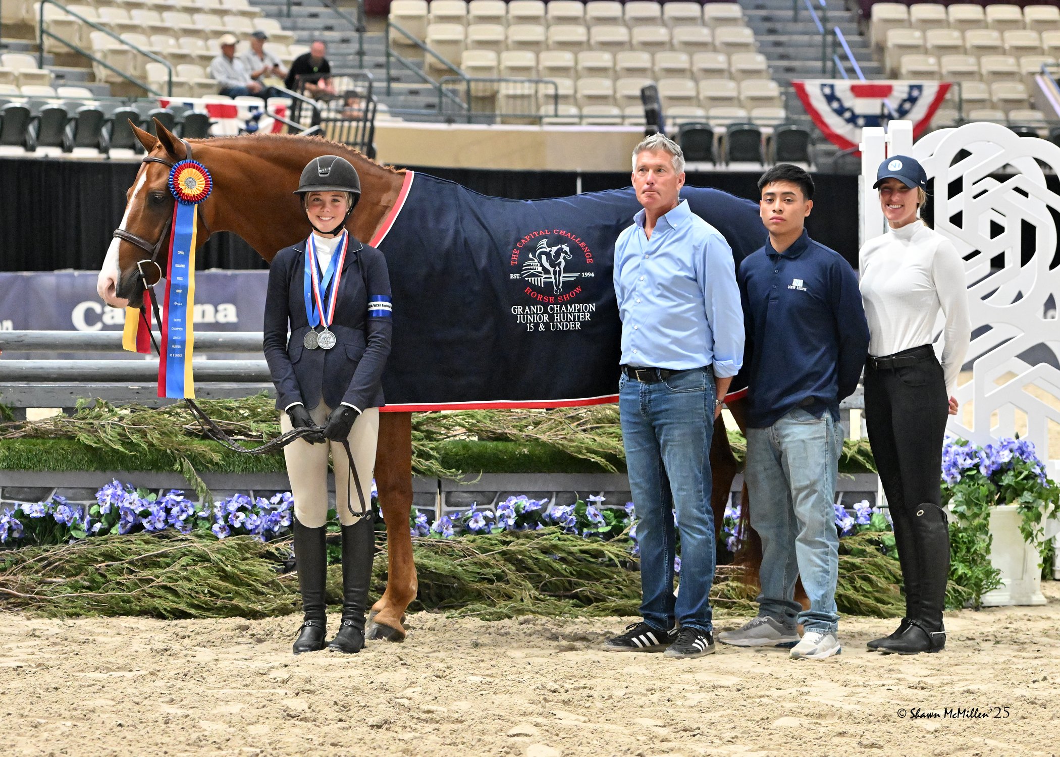 Luciana Gonzalez So made a winning debut at Capital Challenge Horse Show when she and Opportunity Mars, owned by Katie Kantrovitz, led the Children’s Hunter 15-17 division after winning both over fences classes. This also secured the Grand Children’s Hunter Championship sponsored by Mary Jane King. For that win, they were presented with The Laura Pickett Memorial Trophy donated by Julie Karpan. Gonzalez So was also given the Best Children’s Hunter Rider Award sponsored by Wild Sky Farm and The Nelson Family.