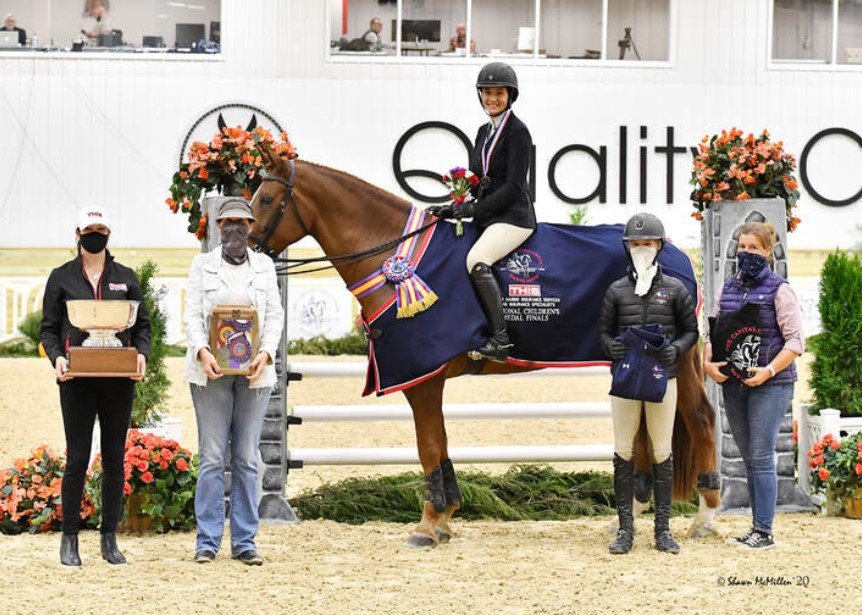 Dayner was aboard her own Gambino, a 13-year-old Irish Warmblood. “He’s a great horse for my first few times at finals and for getting me around some tough courses,” she said of Gambino. “My goals for this year with him were to get a ribbon at Jumping Seat Medal Finals, which I got 10th in; to get a ribbon at Taylor Harris Finals, and to qualify for the Medal and Maclay.”