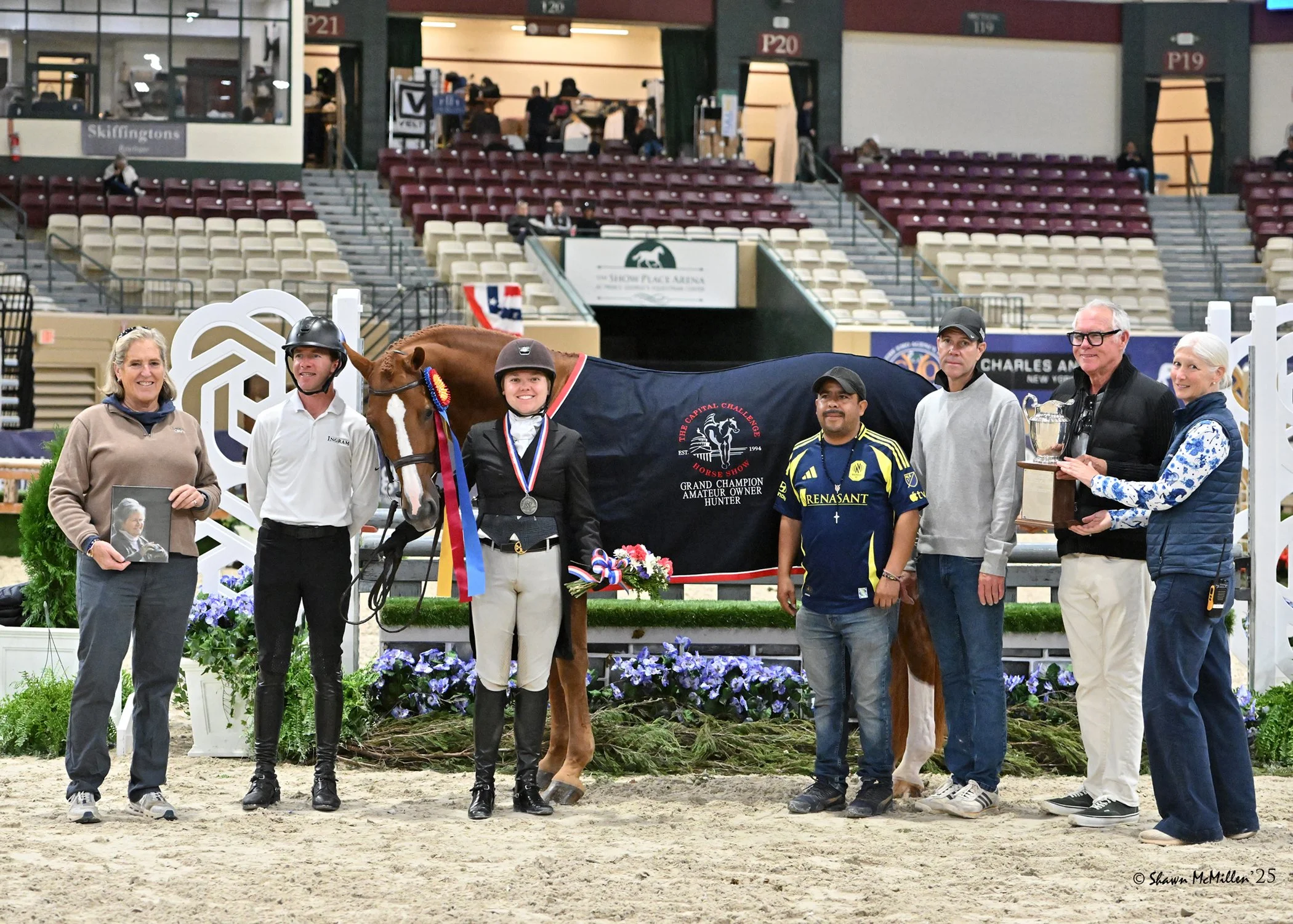 Moving from one division to the next, Ingram kept on winning, this time with Jenkins in the Amateur-Owner 3’6” 18-35 Hunters where they picked up first, second, and sixth places for the division championship, sponsored by The Hallman Family and Merrylegs South LLC. These ribbons also secured them the Grand Amateur-Owner 3’6” Championship, sponsored by Finally Farm, and they received the Dr. Harold M.S. Smith Trophy donated by Dr. Suzanne Smith and Dr. Peter Craig. Ingram was presented with the Best Amateur-Owner 3’6” Rider Award sponsored by Mr. and Mrs. Ernest M. Oare and awarded The So Many Ways Challenge Trophy donated by Karen Kramer.